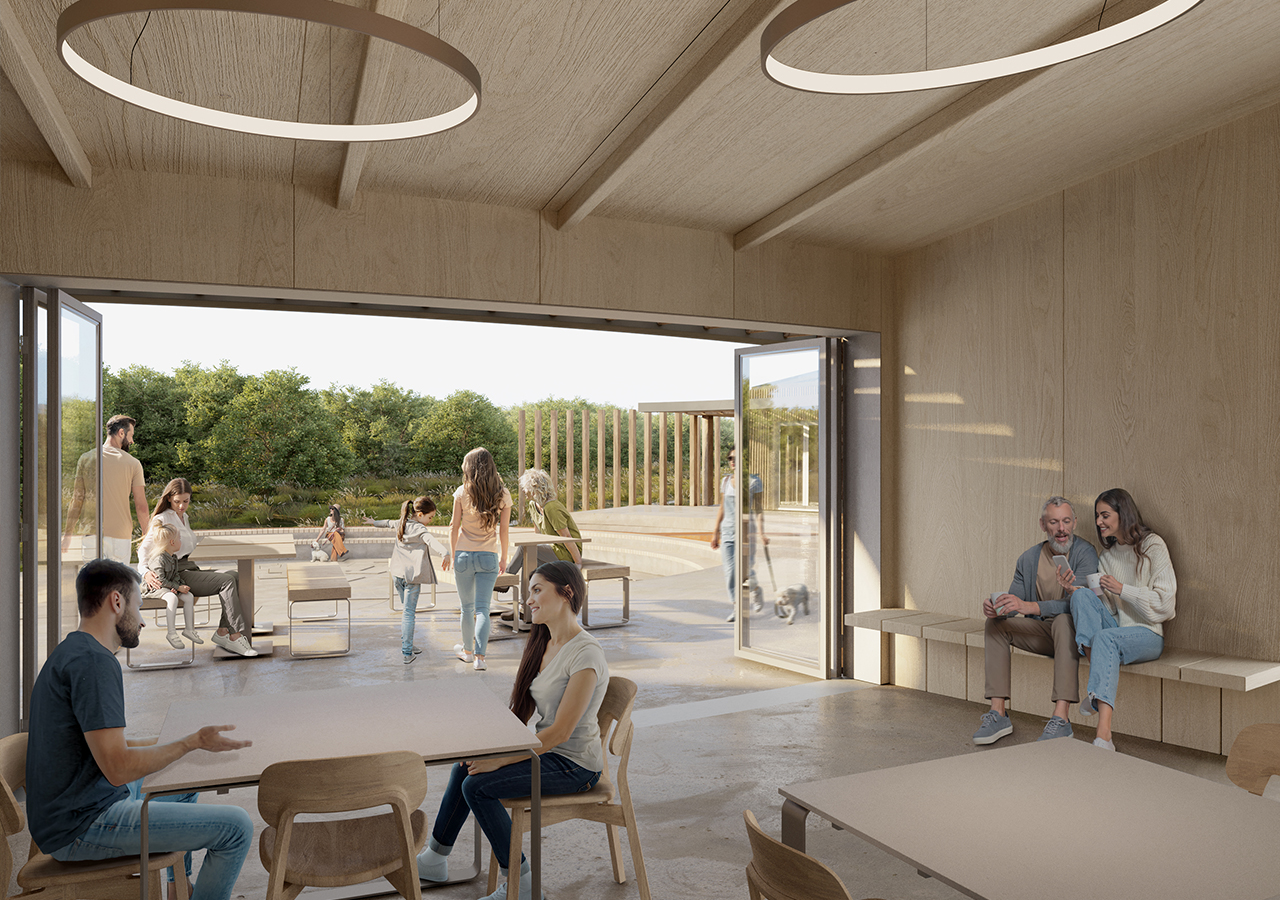 The centre is the key driver behind a wider master plan of landscape interventions and way-finding. The building will provide a much-needed welcome and information point, for visitors to the country park, alongside an enhanced offering to the staff and volunteer team. At present the landscape is not accessible for all and providing learning accommodations both internal and external. A crafted screen divides the second exhibition space into a smaller space for education groups to gather and a range of activities to support learning.