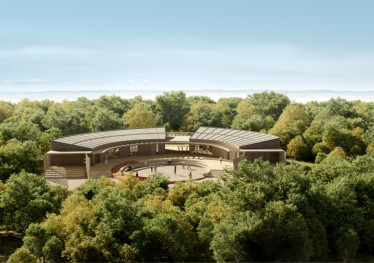 Inspired by the rich Iron Age history of the wider site, the design of the new visitor and learning centre is circular in form. It hovers over the landscape to touch lightly the ancient monument in which it sits. The scheme seeks to celebrate the prominence of the site, reflecting on its heritage and its location to create a new sustainably focused centre which can ensure the future of the park and promote accessibility for all.