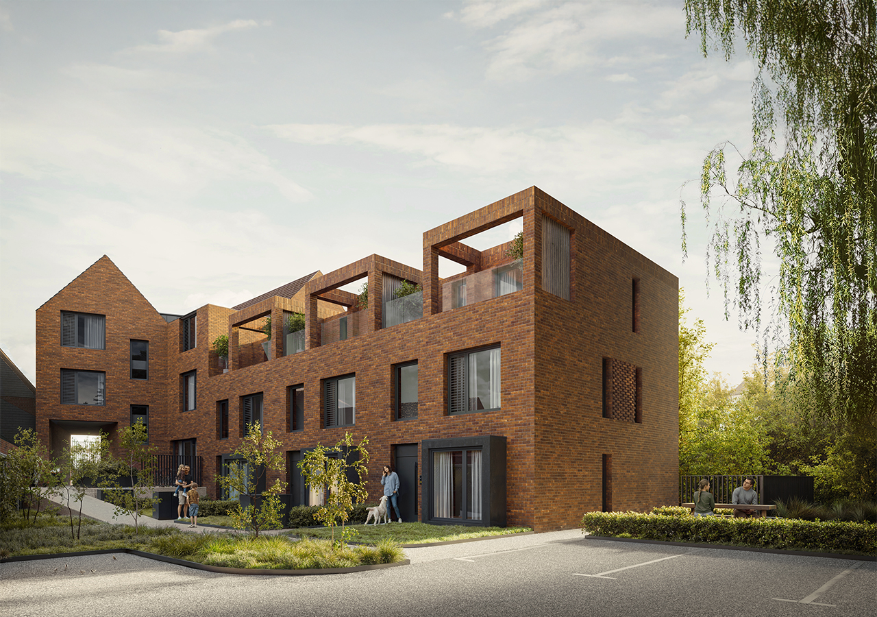 The aspiration is to create an exemplary development with homes that push the architectural standards locally, both from a design and sustainability point of view. The proposals explore the idea of the creation of a new ‘street’, or place, from which residents access the apartments and mews housing. Layering private gardens to the mews houses behind the biodiverse rewilded communal area.